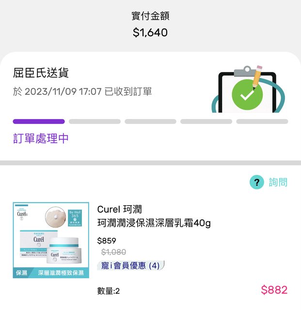 看到珂潤2入實際結帳金額882很可以