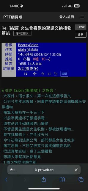 推 soo6719: 交換禮物那篇我很認真回文QQ現在想想好 101.12.19.137 12/19 12:21
