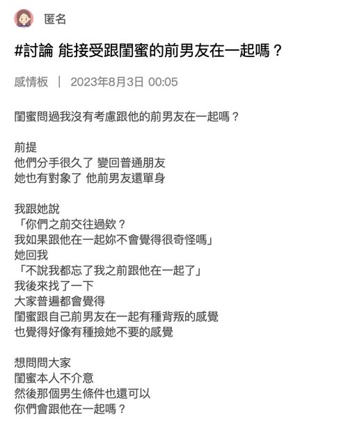 推 loveisth520 : 我有遇過分手後女生被另一個男生追的 08/04 11:14