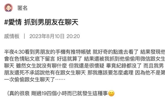 推 HwangYeh : 沒事真的不要去看別人的手機,放過自己放過對方,沒 08/15 23:07