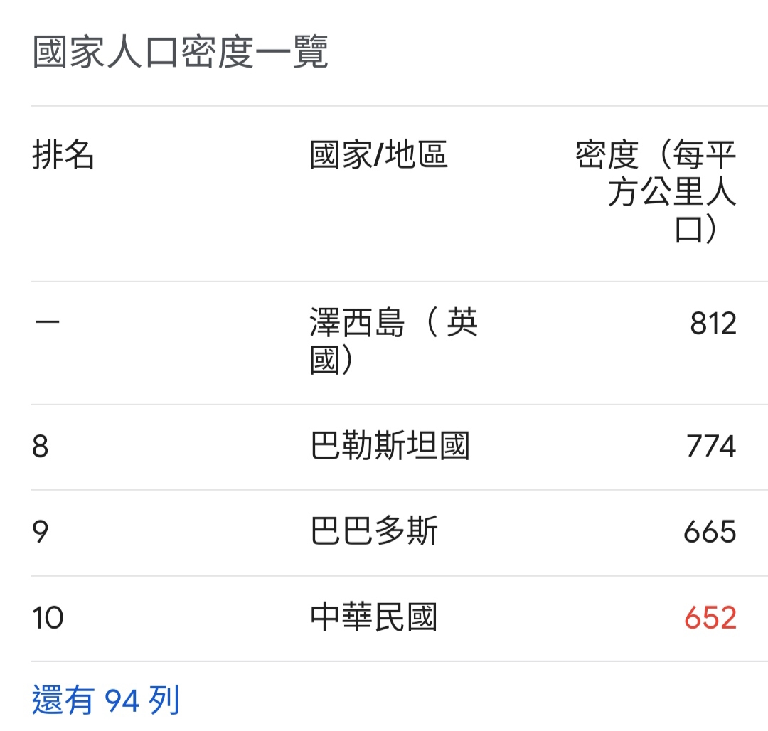 → Freeven : 台灣的人口密度在全世界來說也是前幾高的吧 08/18 19:44