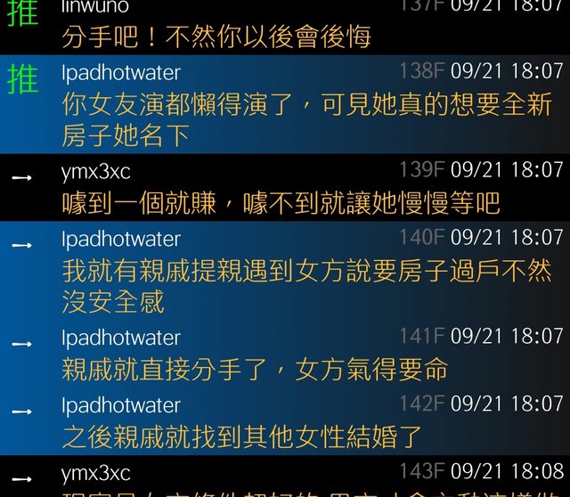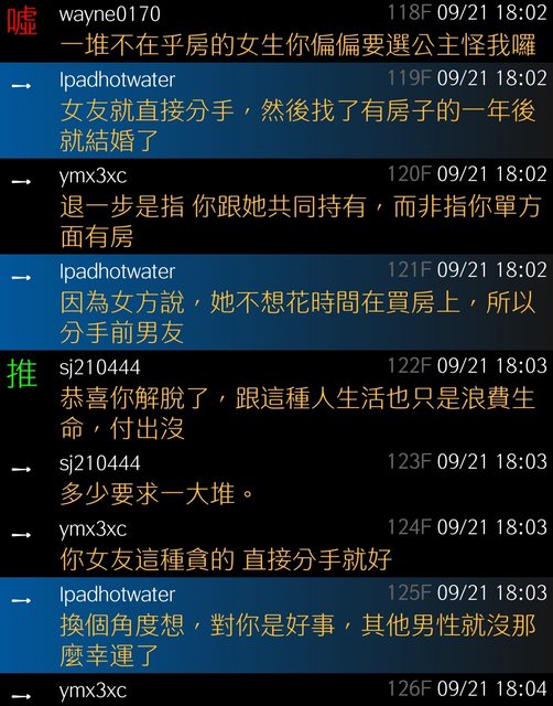 → ckzzz : 的以為是因為房子跟他分手 09/22 10:01