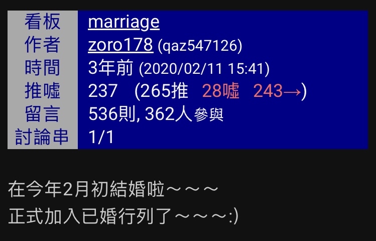 childeviler2: 你應該去婚姻版分享喜悅 11/16 11:20