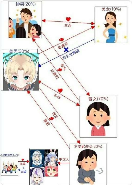 → gina31126 : 分女,他也只能向下擇偶。所以我認為的擇偶分數應 05/18 18:49