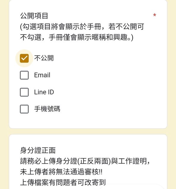 有趣的是,報名表單上有一欄勾選想公開的聯絡方式