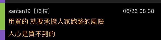 → sunshine901 : 說的好像嬯姨拿錢不會跑? 06/26 23:05
