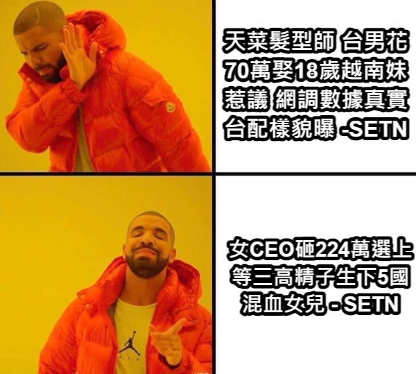 → qa883399 : 的誰當女生誰倒楣欸,趕快都去娶越女啦,反正你們又 07/04 18:44