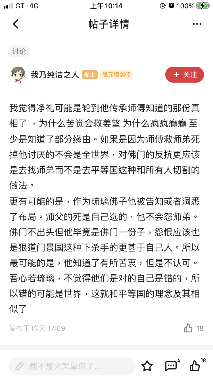 推 m1049a8b7c : 比較好奇淨禮怎麼看姜望 會不會覺得他害死師父 畢 10/26 19:04