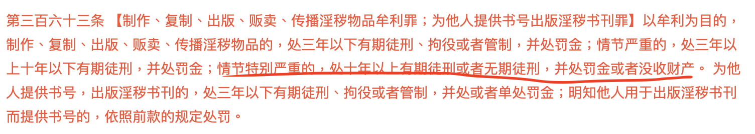 → meblessme : 中國寫黃書賺到一定金額可以判十年 12/02 00:49