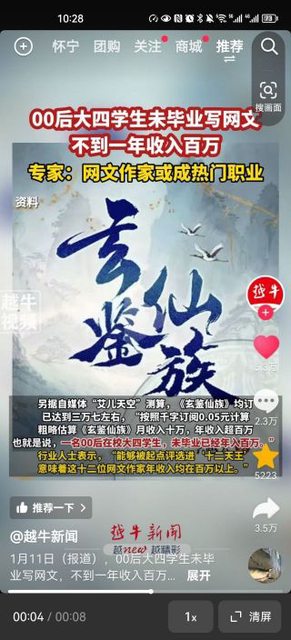 : 近日 一名00後大四男生寫網文年入百萬的消息引發熱議。網文業內人士表示