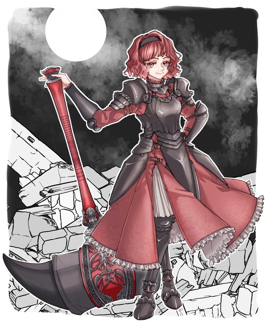 戰斧,以及指揮官的金屬胸甲,薇爾娜擺出這些裝備,繪聲繪影地述說它們曾屬於過去保