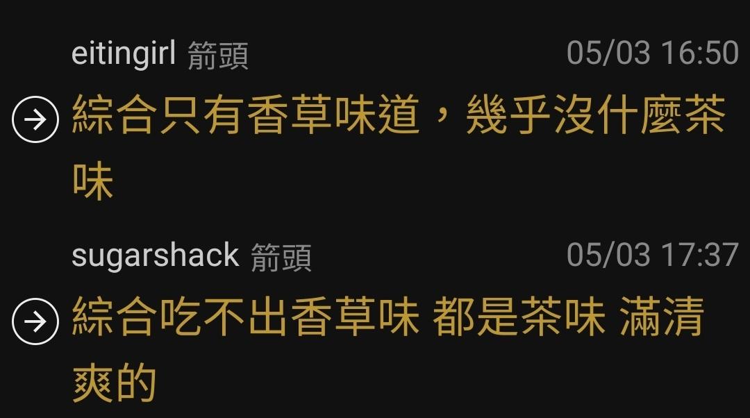 推 wei76119: 上面推文好讓人困惑,綜合到底是茶味重還是香草重,哈 05/03 19:17