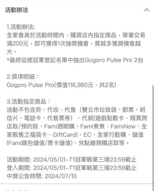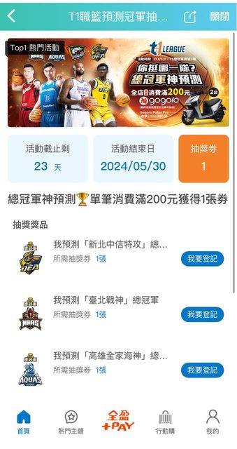 標題[情報] 全家抽獎趣—T1職籃總冠軍預測抽gogoro