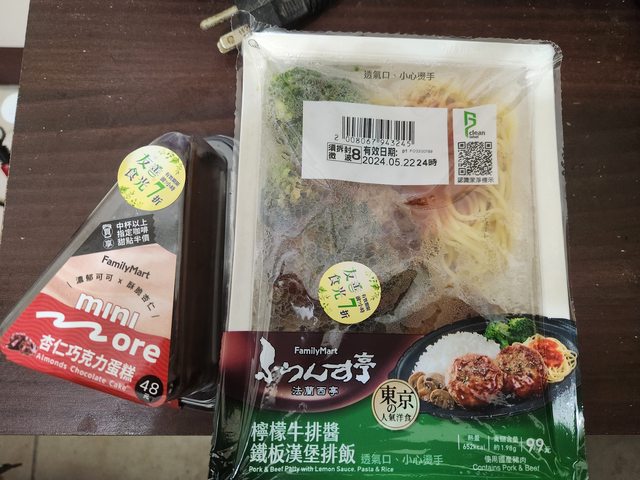 標題[商品] 全家 檸檬牛排醬漢堡排飯/杏仁巧克力蛋糕