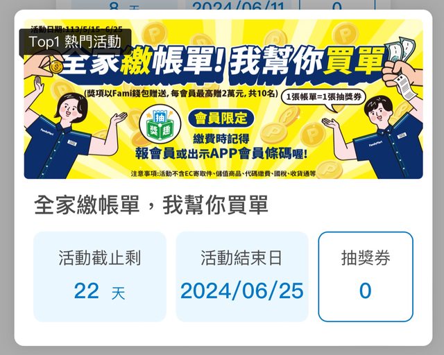 → nching2: 之前全家中獎都不會通知,就再也不抽了 06/06 18:00