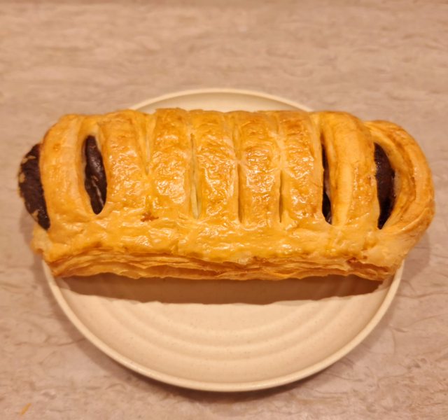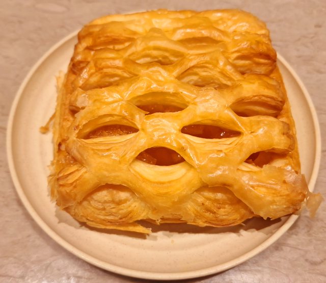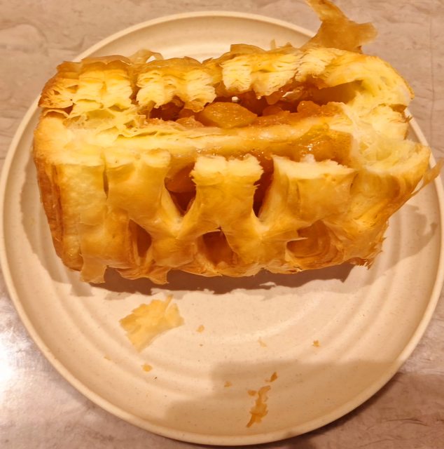 外層是酥皮丹麥麵包 而裡面則是蘋果餡 內餡份量尚可
