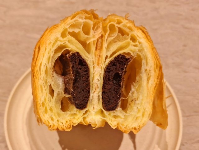 簡單來說 就是外面是丹麥麵包 裡面是布朗尼蛋糕