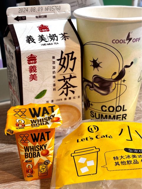 【商品名稱/價格】:WAT威士忌爆爆珠69元、義美奶茶38元(400ml)、冰塊杯15元