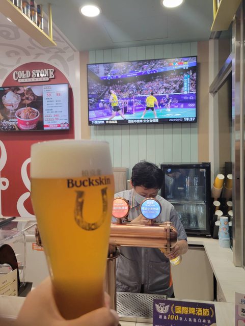 結果朋友告訴我有些711可以喝啤酒看奧運