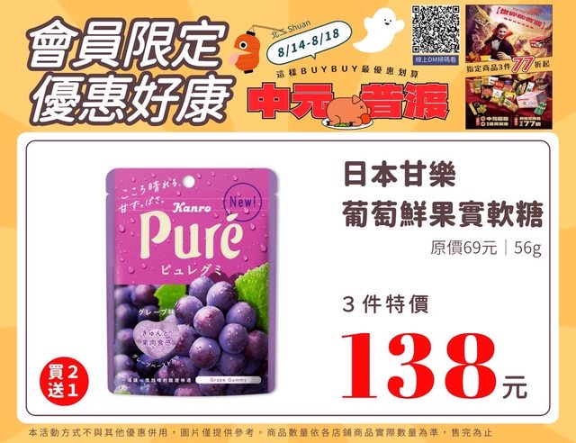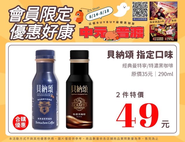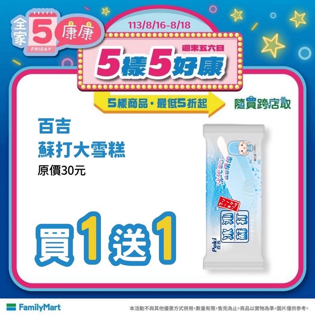 【活動名稱】:會員限時優惠 【便利商店/廠商名稱】:全家 【活動時間】:2024/08/14~2024/08/18 【活動內容】: