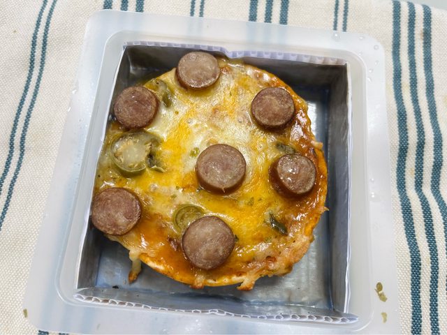 【商品名稱/價格】:德式辣腸貝果披薩 / 49元