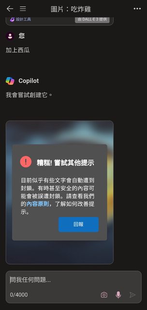 再來命令他加上西瓜,疑似踩到敏感詞,失敗