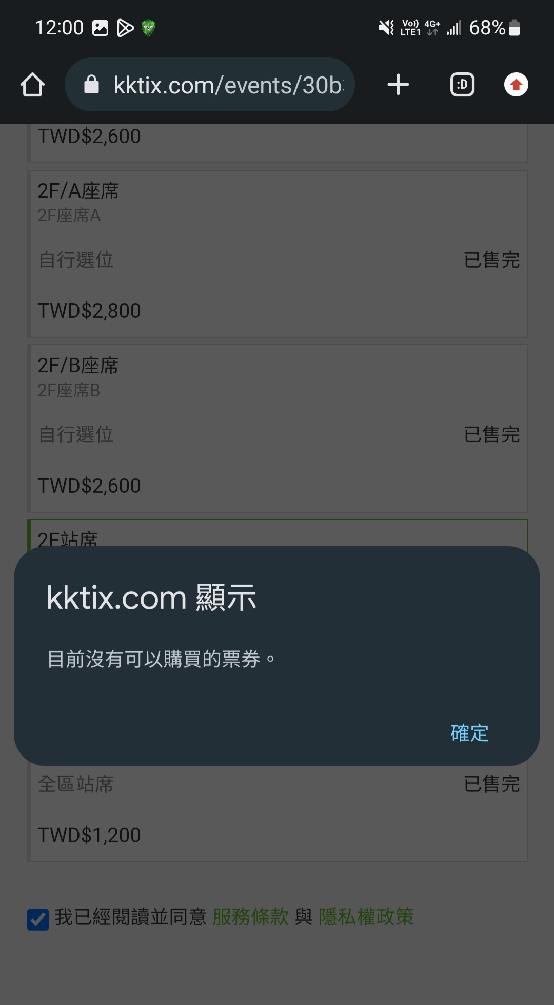 未付款的票券就會陸陸續續釋放出來,消費者可隨時留意是否有釋出可售票券張數。