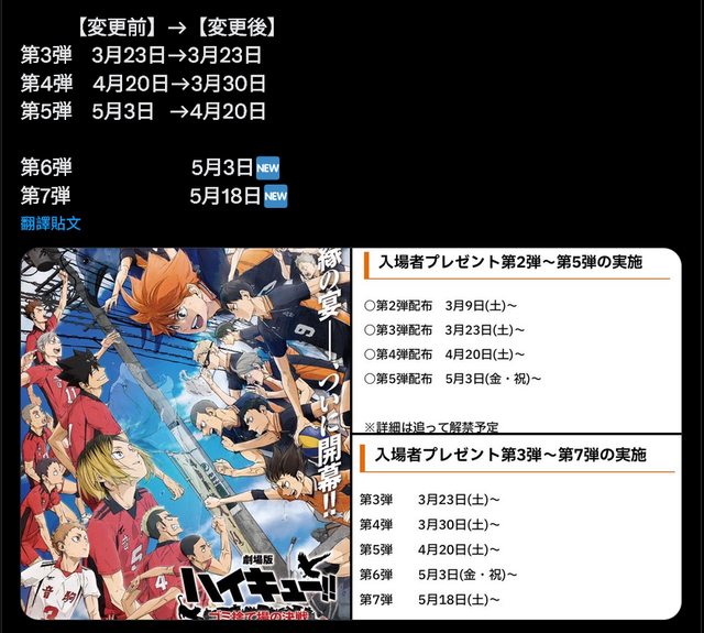 標題[閒聊] 排球少年劇場版特典發佈調整