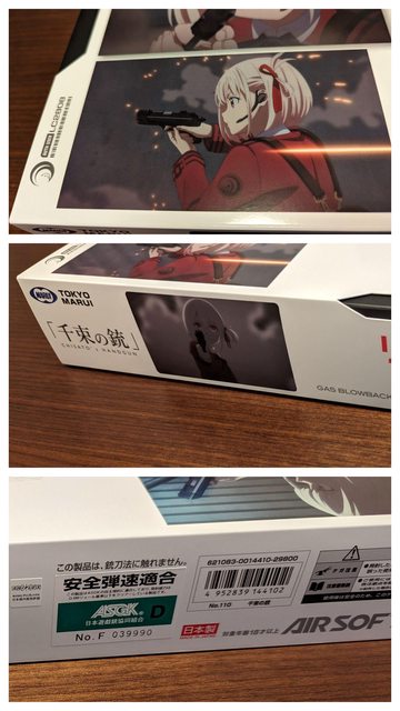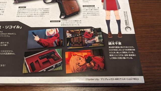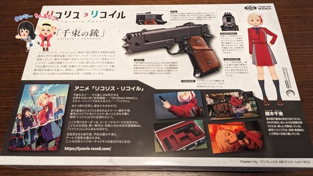 再請大家看一下外盒背面,動畫裡千束的槍的盒子是怎樣的配置。
