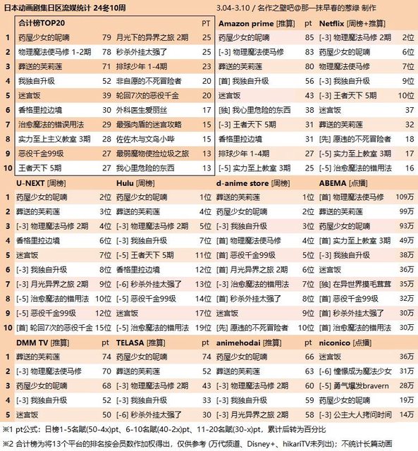 標題[閒聊] 上周日本串流動畫觀看排行榜(3/4~3/10)