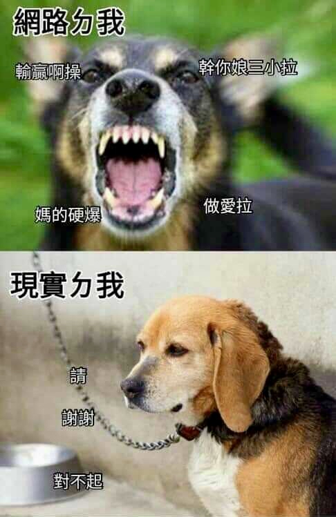 推 castlewind: 以前有句話是這樣 「現實中我唯唯諾諾 網路上我重拳 03/20 02:05