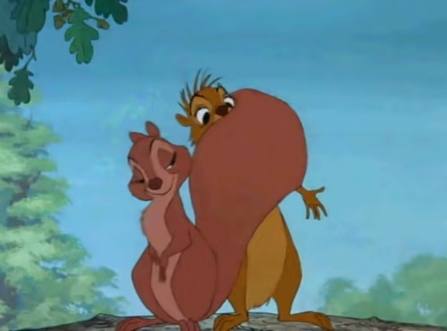 同場加映,同為迪士尼出品的動畫電影石中劍,那隻對著變身為松鼠的亞瑟發情的母松鼠。