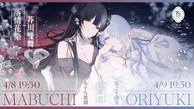 今年的4月還是來自「芥川組」的2位Vtuber【九十九真淵】和【雪之下織雪】的出道之日