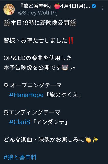 推 jerry00116: 赫蘿我婆,OP歌手風格挺符合的,應該會不錯 03/21 14:29