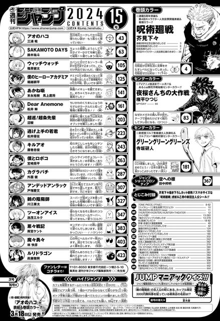 標題Re: [情報] 週刊少年JUMP 2024年15號順位(作者的話)