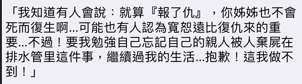 推 sunwit: 殺惡人的話.復仇至少可以減少未來的受害者 03/24 18:21
