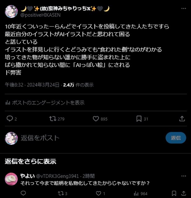 → x2159679: 這陣子一堆檔案咒術師就是因為novelAI用一堆檔案繪師的 03/25 13:53