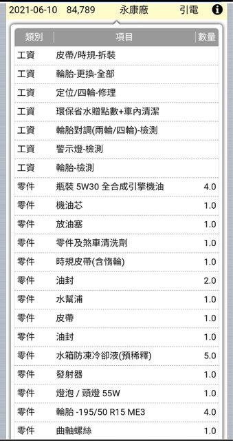 八萬五更新四條正新輪胎和正時皮帶,前避震二支在九萬四更換