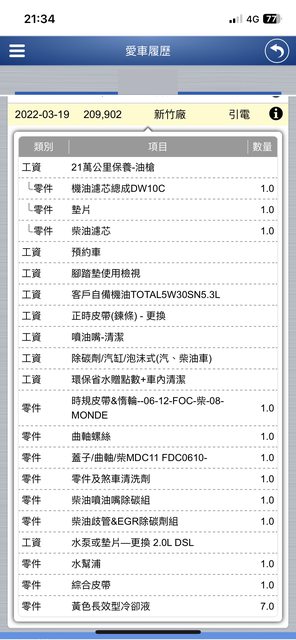 新車至今全程原廠保養,照表操課,約看車時可出示福特app所有保養紀錄.