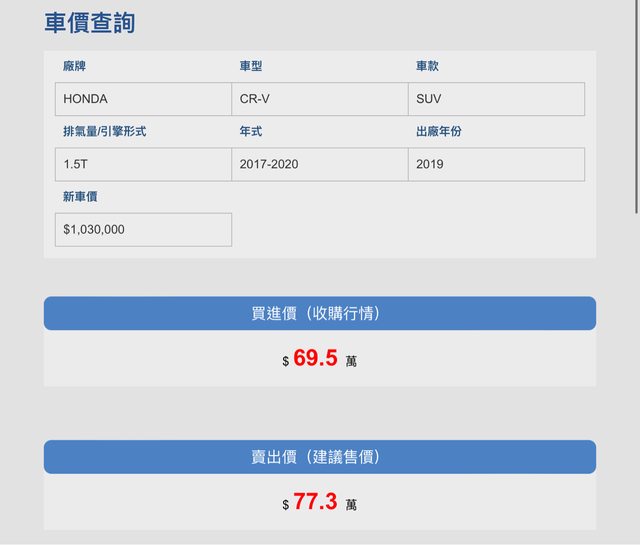 標題[售車] HONDA CRV Vtis 2019(降價)