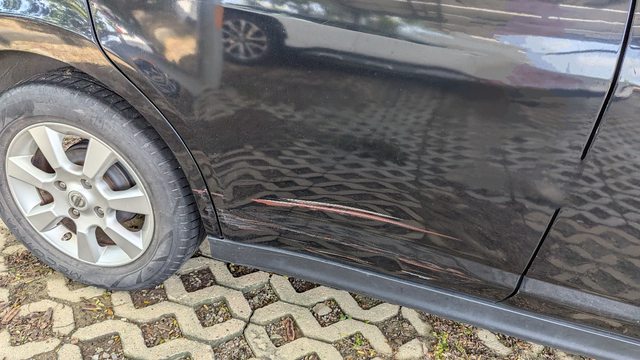 前車主有刮到車身右側,有一處刮傷,但後面沒有處理就繼續這樣開。
