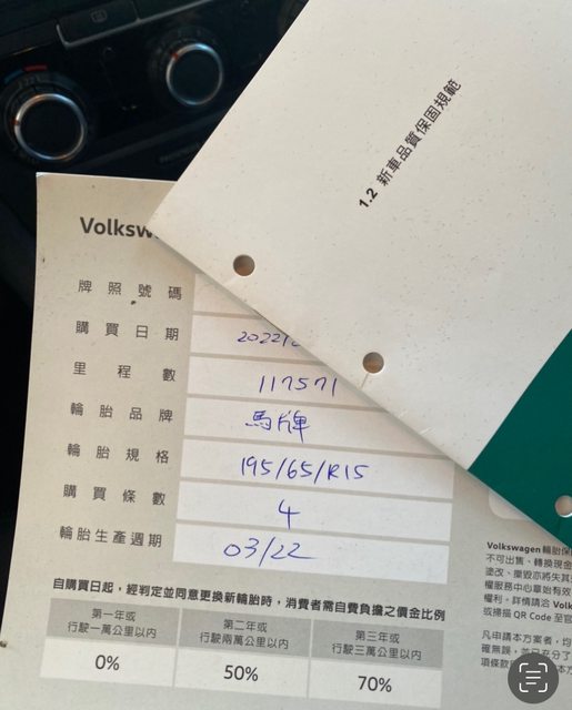 6. 四條胎馬牌CC6在里程117000 (2022/08) 更換,目前約使用14000km