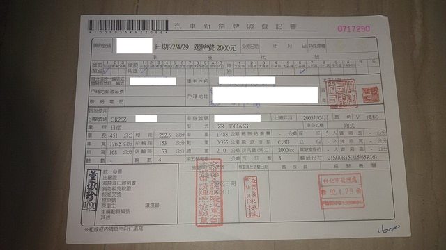 https://i.imgur.com/DgoYjJz.jpeg 當年購車時的汽車新領牌照登記書