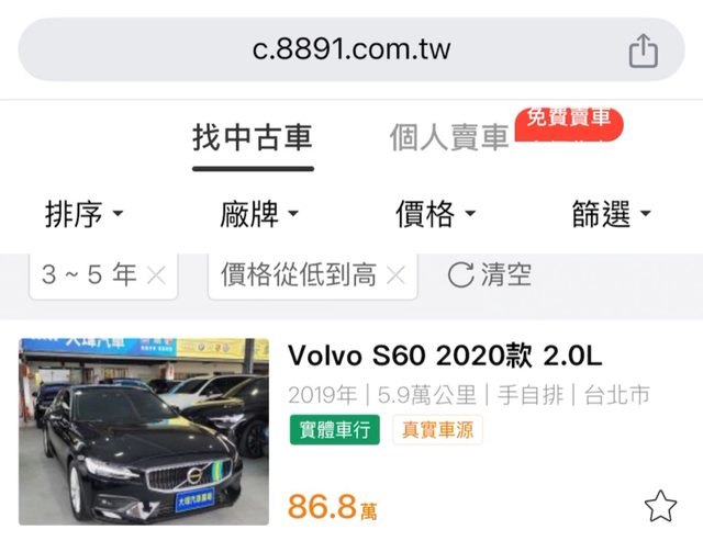 這台是進口車,我大概只會願意再持有四年,因為之後可能都要比較費心保修。雖然現在VOLVO市占車多了。假設新車186萬,8年後剩下30萬,若只計算第4-8年持有期間,那相當於4年我損失了67萬車價。對比一般國產新車的車價折損4年約40萬。每年多花7萬,每月多6000元,讓自己和家人安全,且有好的乘車品質,我會買。