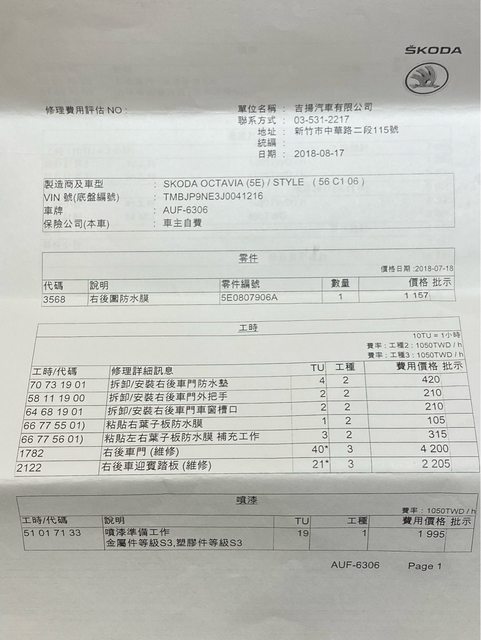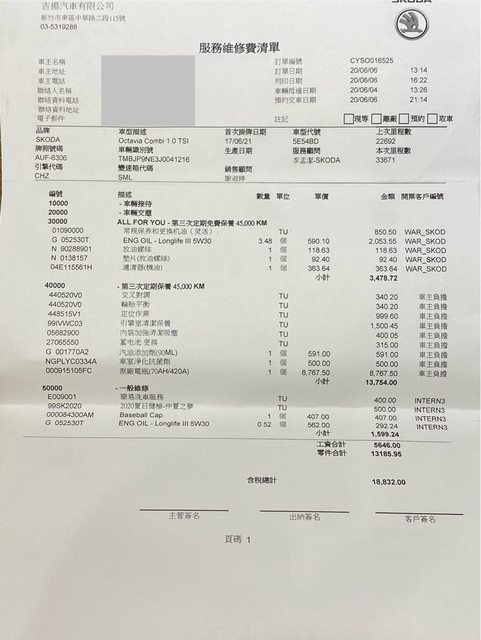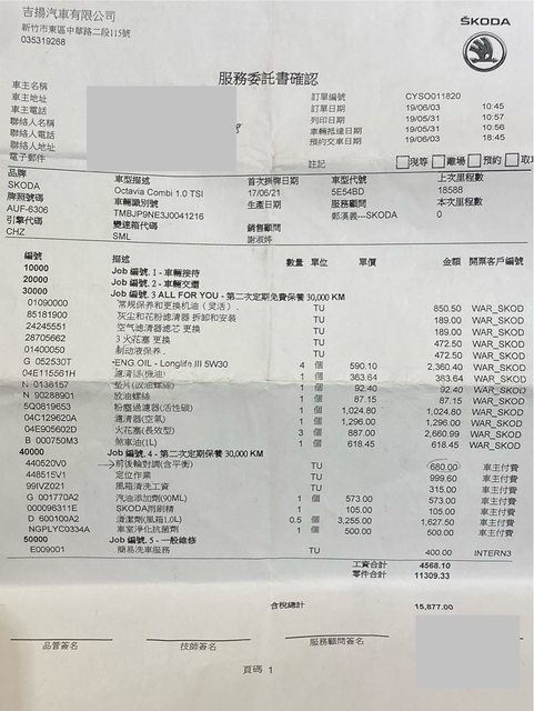 其它說明:全原廠保養,工單如照片(2022年沒找到,原廠有紀錄),維修過3次,不小 心擦撞,其實只有小擦傷但因保險有給付便要求原廠換新都直接換新料修復(工單如照片 ),去年剛做完原廠大保養($35000元,皮帶已換完) ,這兩個月前剛換全新電瓶,輪胎有換過一次了。這台車省油省稅,開到現在都沒問題妥 善不錯,換新車故出售,資料都公開透明在下面供參考,謝謝