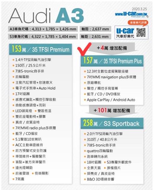 車款型式/排氣量:A3 Sportback 35 TFSI premium plus/ 1395cc