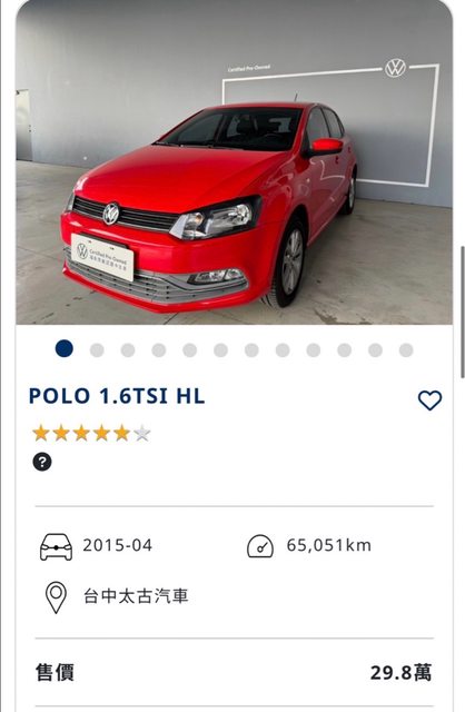 標題[售車] 2015 福斯 POLO 1.6 HL 5d 紅