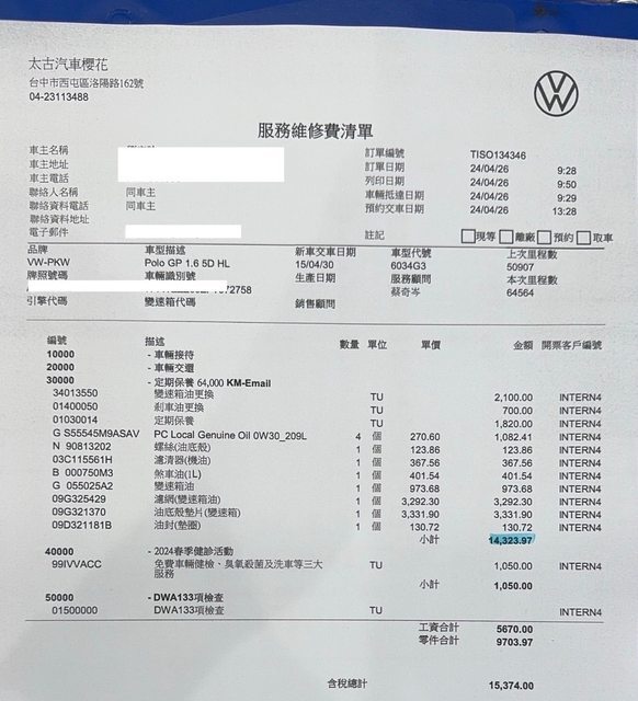 當時以29萬入手,已更換5油3水,並安裝前後行車紀錄季跟胎壓偵測器13,000。