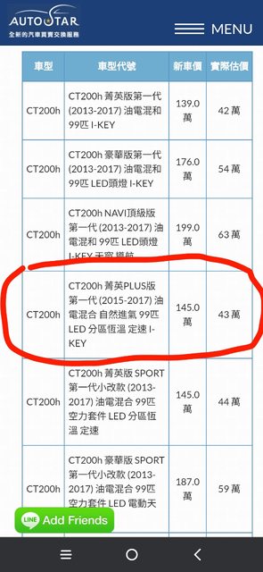 車款型式/排氣量:CT200H