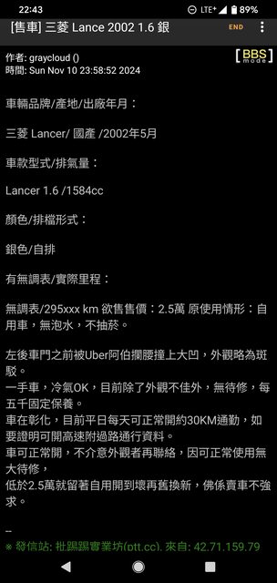 ※ 文章網址: https://www.ptt-web.org.tw/CarShop/M.1731372892.A.949